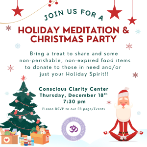 The Conscious Clarity Center, Satsang Meditation Group, meets on the third Thursday of each month. We discuss “How to Embrace Spirituality in Daily Life” through the process of Spiritual Transformative Education. This event is for anyone who wants to learn how to maintain inner peace and participate in a Spiritual Body experience.